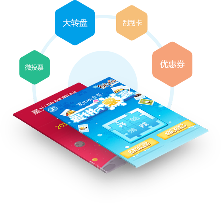 微营销服务主要包括摇一摇、抽奖、红包、大转盘,投票活动、刮刮乐、砸 金蛋等多种营销工具,您可针对企业品牌文化、产品特征,设计微信互动活 动,引发用户对商家微信的兴趣及关注度,以达到营销目的。